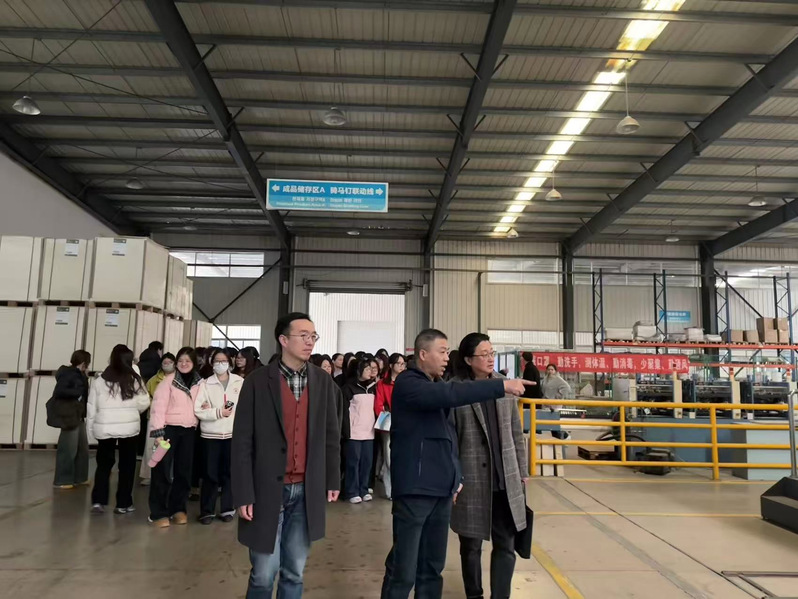 为进一步深化产教融合,强化学生的实践应用能力,2025年11月25日,美术与设计学院副院长沈冠东、吴文勇两位老师带领视觉传达设计专业2023级全体学生,前往江苏鑫汇金印刷有限公司进行企业考察与实践学习活动,旨在将《包装设计综合课题实践》课堂搬到生产一线,零距离直观包装印刷的全流程。
